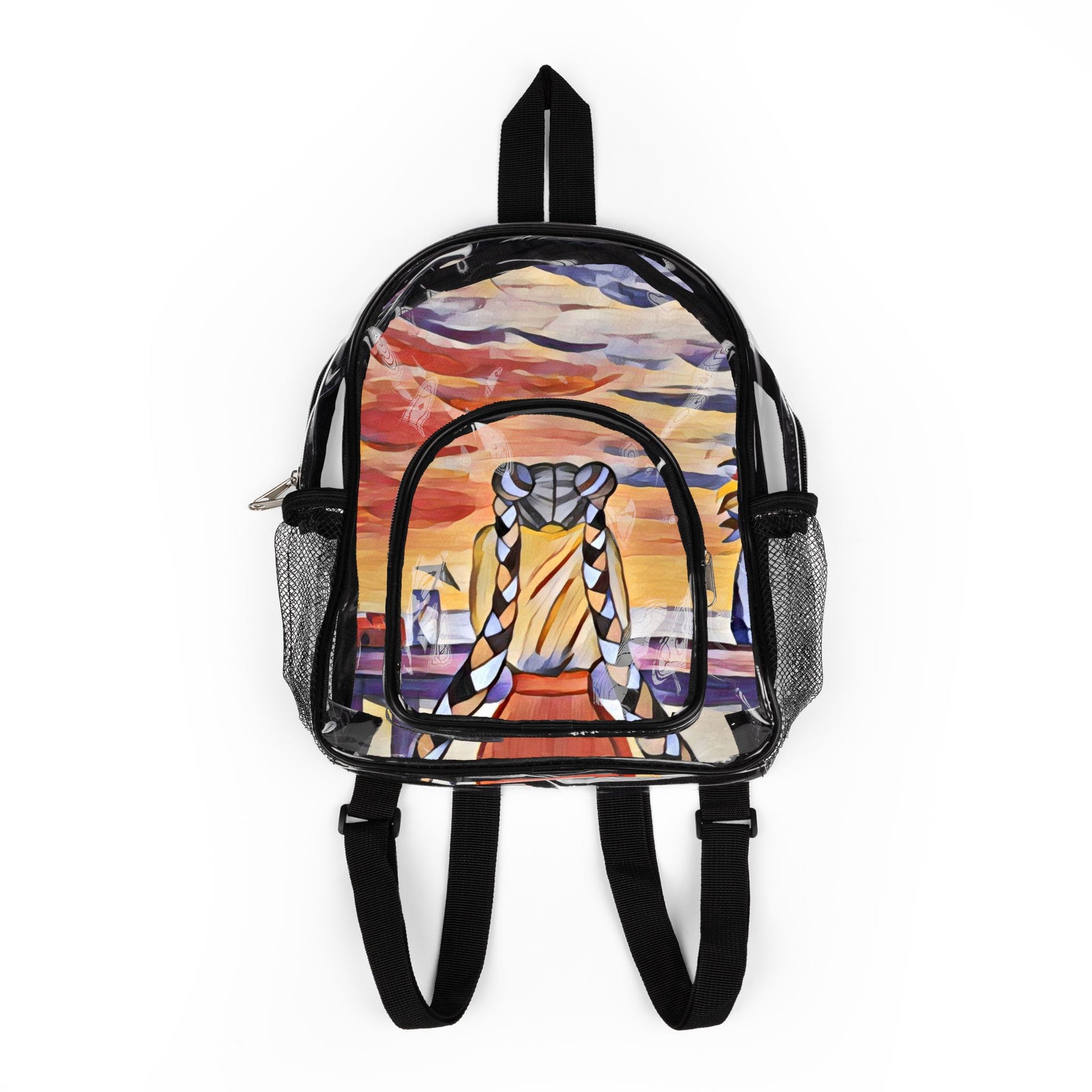 My Alignment EP art on a gorgeous and practical backpack. Crafted from durable, water-resistant PVC, it features a sleek transparent design that exudes modernity. Perfectly sized at 23.5cm x 9.5cm x 30cm, it provides ample interior space for your essentials while allowing quick visibility. The reliable zipper closure ensures your belongings are secure, while the convenient carrying strap makes transportation effortless. This backpack is not just for sports events; it’s also perfect for music festivals, beach days, and even casual outings.